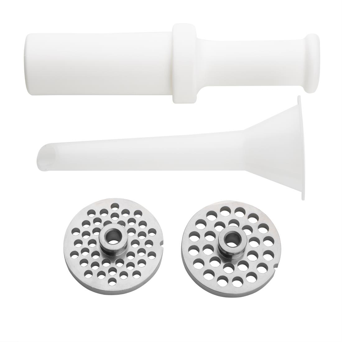- Easy-clean stainless steel blade, perforated plates and feeder pan