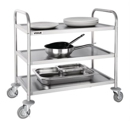 Vogue Stainless Steel 3 Tier Clearing Trolley Medium