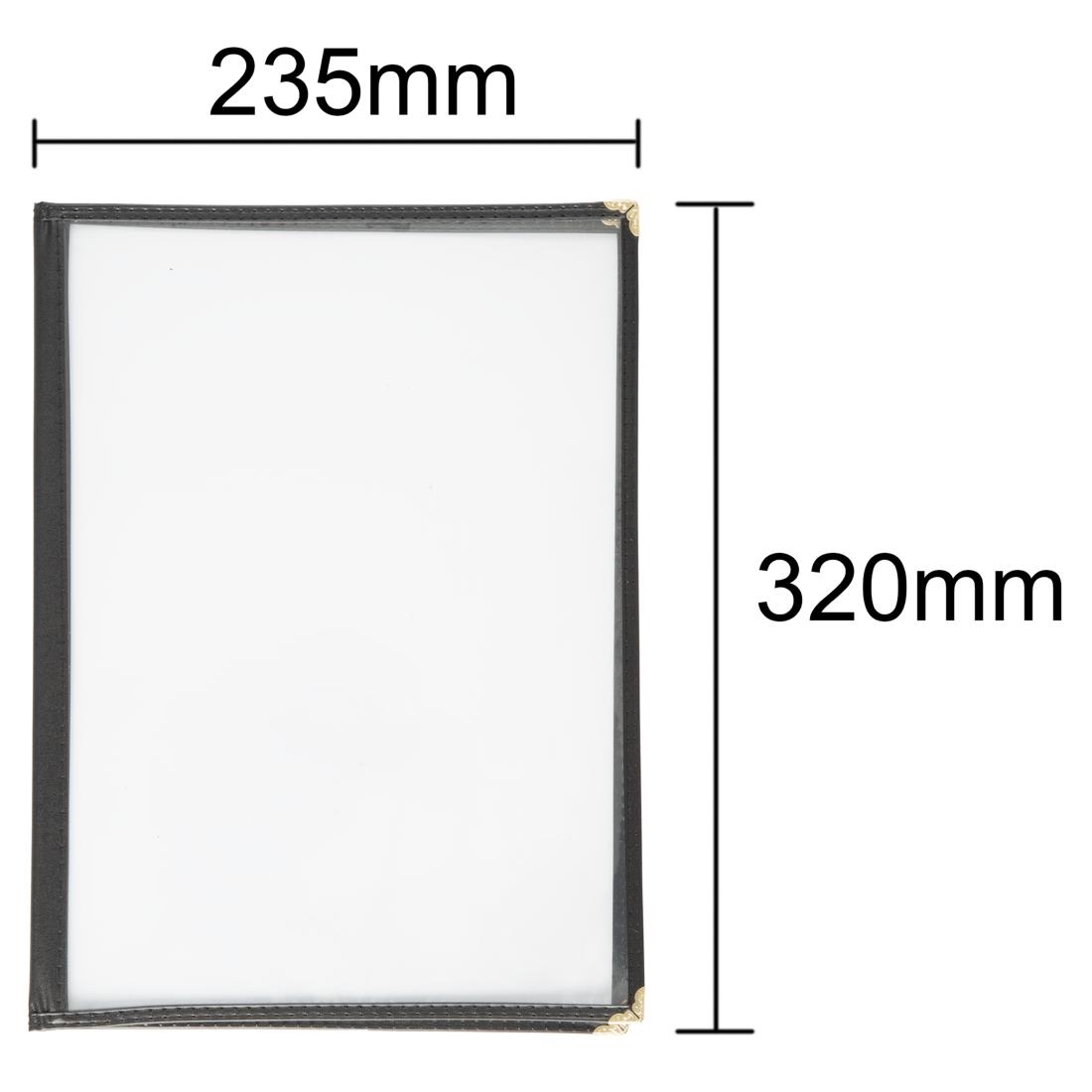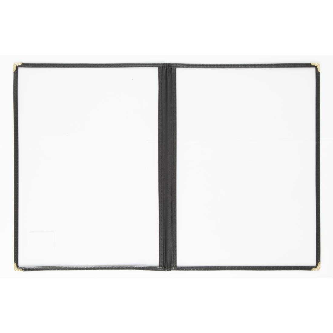 An understated and practical addition to any restaurant table, four page American menu covers from Olympia have a booklet-shaped design featuring two double sided panels. Diners therefore see a total of four pages, allowing you to either showcase an extensive menu or customise the first and last sheets to provide a front and back cover for your menu. These classic black American menu covers are available in A4 and A5 and have durable, stitched edges which are completed with reinforced metal corners.