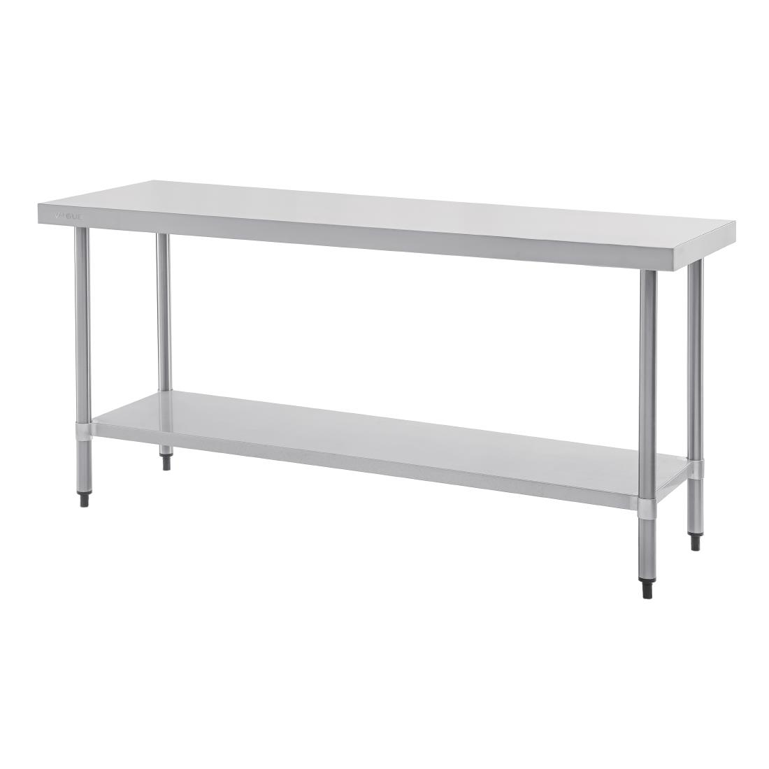 Give your staff the space they need to prepare quality dishes with this stainless steel prep table from Vogue. With a height adjustable shelf, the table can store items and appliances of various sizes – making for a handy storage space for measuring bowls and other items needed to prep food.